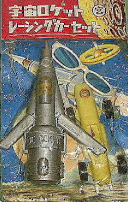 Earlier in the autumn Japan auction hound Terry sent me a link to these pictures of an unusual Space Rocket TO1 'Perfect Model' kit by Midori of Japan. It's super sleek shape and trio of engine fins will appear familiar to blog readers because we've this rocket at least twice before: on the X-60 Space Rocket and Lucky Toys' Lunar Probe No.1 [pictured below]. Any more rockets of this shape Swordies?