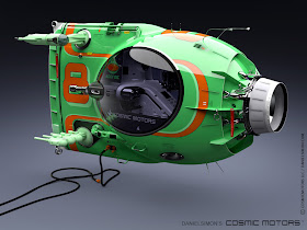 The personal race pods defy conventional means of propulsion, with a star wars style gravity negating drive. The detail extends down to the tiny scratches and decals and instruction panels on the vehicles too.