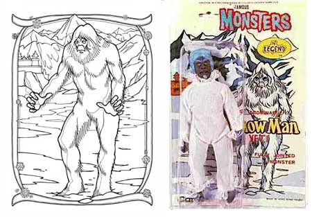 Googling for more monster colouring books I came across this amazing feature, Monster Gallery, on the uber-awesome Plaid Stallions site about the Monster Gallery colouring book from the early 1970's. The feature establishes that many of the illustrations by Mark Savee became the artwork used on Tomland's 1970's line of Famous Monsters of Legend action figures. These include this Snow Man [picture Plaid Stallions]:
